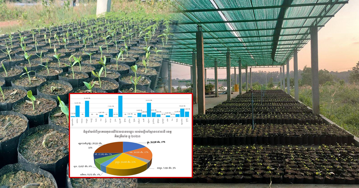 រាជធានីភ្នំពេញ៖ នៅថ្ងៃទី០៥ ខែមករា ឆ្នាំ២០២៤ យោងតាមការចុះផ្សាយរបស់ ក្រសួងបរិស្ថាន បានឱ្យដឹងថា រហូតដល់បំណាច់ខែធ្នូ ២០២៣ មន្ទីរបរិស្ថានរាជធានី ខេត្ត បានខិតខំបណ្ដុះកូនឈើ បានចំនួន២៣៤,៣៧១ដើម និងការចែកជូនកូនឈើ ជាបន្តបន្ទាប់ ដល់ប្រជាពលរដ្ឋ យកទៅដាំតាមផ្ទះ សាលារៀន វត្តអារាម សហគមន៍ បានចំនួន១៩១,៨២០ដើម។ ដើម្បីរួមចំណែកបង្កើនភាពបៃតងស្របនឹងយុទ្ធសាស្រ្ដចក្រាវិស័យបរិស្ថាន ក្រសួងបរិស្ថាន បានដាក់ចេញយុទ្ធនាការថ្ងៃ១០ តុលា ២០២៣ ស្តីពីរៀបចំបណ្តុះកូនឈើ សម្រាប់ចែកជូនប្រជាពលរដ្ឋដោយឥតគិតថ្លៃ ចំនួន ១លានដើម ចាប់ពីខែកក្កដា ២០២៤នេះ។ ការដាំដើមឈើ គឺស្របទៅនឹងស្ថានភាពដី