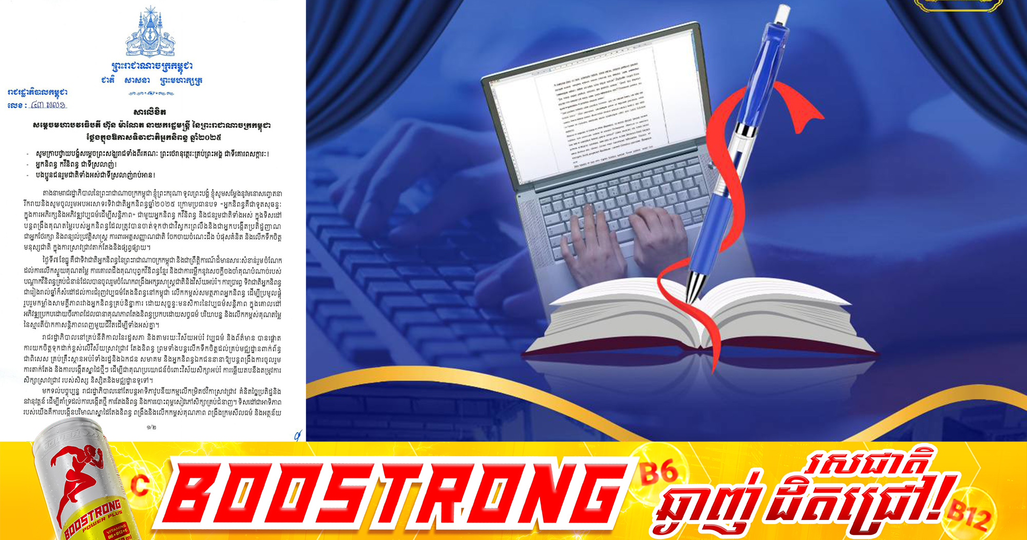 (ភ្នំពេញ)៖ សម្តេចបវរធិបតី ហ៊ុន ម៉ាណែត នាយករដ្ឋមន្ត្រីនៃកម្ពុជា នៅថ្ងៃទី៧ ខែធ្នូ ឆ្នាំ២០២៥នេះ បានបង្ហោះសារ សូមអបអរសាទរ ទិវាជាតិអ្នកនិពន្ធ លើកទី២ ឆ្នាំ២០២៥ ក្រោមប្រធានបទ «អ្នកនិពន្ធគឺជាទូតសុឆន្ទៈ ក្នុងការអភិរក្សនិងអភិវឌ្ឍវប្បធម៌ដើម្បីសន្តិភាព» ជាមួយអ្នកនិពន្ធ កវីនិពន្ធ និងជនរួមជាតិទាំងអស់ ក្នុងទិសដៅ បន្តពង្រឹងគុណតម្លៃរបស់អ្នកនិពន្ធដែលត្រូវបានចាត់ទុកថាជាវិស្វករព្រលឹងនិងជាអ្នកបង្កើតប្រតិដ្ឋញាណ ជាអ្នកថែរក្សា និងពន្យល់ប្រវត្តិសាស្ត្រ ការពារអត្តសញ្ញាណជាតិ ចែកចាយចំណេះដឹង បំផុសគំនិត និងលើកទឹកចិត្ត មនុស្សជាតិ ក្នុងការស្រាវជ្រាវតាក់តែងនិងផ្សព្វផ្សាយ។ ការប្រារព្ធ ទិវាជាតិអ្នកនិពន្ធ ជារៀងរាល់ឆ្នាំក៏សំដៅដល់ការជំរុញវប្បធម៌តែងនិពន្ធនៅកម្ពុជា លើកកម្ពស់សមត្ថភាពអ្នកនិពន្ធ ដើម្បីប្រមូលផ្តុំ រួបរួមកម្លាំងសាមគ្គីភាពរវាងអ្នកនិពន្ធគ្រប់និន្នាការ ដោយសុច្ឆន្ទៈមនសិការនៃវប្បធម៌សន្តិភាព ក្នុងគោលដៅ