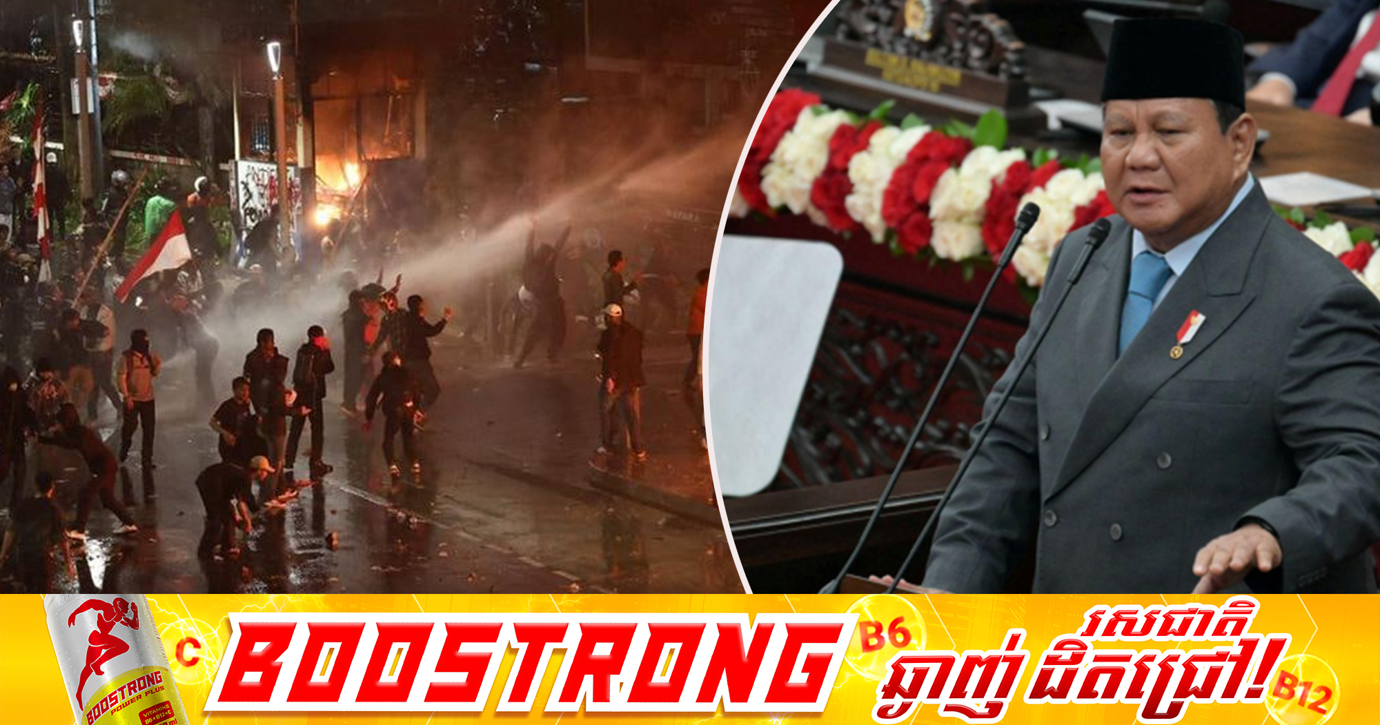 (ហ្សាការតា)៖ កាលពីថ្ងៃសៅរ៍ ទី៣០ ខែសីហា ប្រធានាធិបតីឥណ្ឌូណេស៉ី លោក Prabowo Subianto បានលុបចោលគម្រោងធ្វើទស្សនកិច្ចទៅកាន់ប្រទេសចិន ស្របពេលដែលការផ្ទុះបាតុកម្មប៉ុន្មានថ្ងៃមកនេះ បានបន្តរីករាលដាលខ្លាំងលើសពីរដ្ឋធានីហ្សាការតា ដោយអគារសភាប្រចាំតំបន់មួយចំនួន ត្រូវបានដុតបំផ្លាញ។ នេះបើតាមការចេញផ្សាយដោយ ទីភ្នាក់ងារព័ត៌មាន Reuters។ លោក Prabowo កន្លងមក បានគ្រោងធ្វើដំណើរទៅចូលរួមពិធីព្យុហយាត្រាយោធាទិវាជ័យជម្នះនៅចិន នាថ្ងៃទី៣ ខែកញ្ញា ដែលត្រូវជាខួបទី៨០ នៃការបញ្ចប់សង្រ្គាមលោកលើកទី២ ក្រោយជប៉ុនប្រកាសចុះចាញ់សង្រ្គាមជាផ្លូវការ។ អ្នកនាំពាក្យប្រធានាធិបតីឥណ្ឌូណេស៉ី លោក Prasetyo Hadi បាននិយាយក្នុងសេចក្តីថ្លែងការណ៍ថា លោក Prabowo ចង់នៅបន្តឃ្លាំមើលស្ថានការណ៍ក្នុងប្រទេសដោយផ្ទាល់ ហើយស្វែងរកដំណោះស្រាយដែលប្រសើរបំផុត ដូច្នេះហើយលោកសុំអភ័យទោសចំពោះរដ្ឋាភិបាលចិន