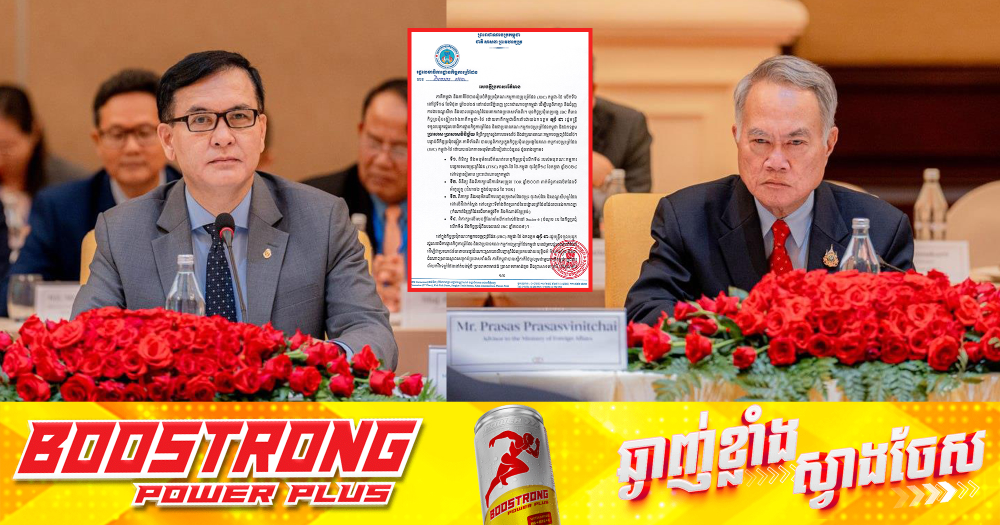 (ភ្នំពេញ)៖ រដ្ឋលេខាធិការដ្ឋានកិច្ចការព្រំដែន នៅរសៀលថ្ងៃទី១៥ ខែមិថុនា ឆ្នាំ២០២៥នេះ បានចេញសេចក្ដីប្រកាសព័ត៌មានផ្លូវការ បង្ហាញអំពីលទ្ធផល នៃកិច្ចប្រជុំគណៈកម្មការចម្រុះខណ្ឌសីមា និងបោះបង្គោលព្រំដែនគោក (JBC) កម្ពុជា-ថៃ ក្រោយដំណើរការអស់រយៈពេលពីរថ្ងៃ នៅប្រទេសកម្ពុជា។ ផ្អែកតាមសេចក្ដីប្រកាសព័ត៌មាន ដែលបណ្ដាញព័ត៌មាន ទទួលបានបញ្ជាក់ថា បន្ទាប់ពីកិច្ចប្រជុំចង្អៀត ភាគីទាំងពីរបានបន្តពិភាក្សាក្នុងកិច្ចប្រជុំពេញអង្គ នៃគណៈកម្មការចម្រុះព្រំដែន (JBC) កម្ពុជា-ថៃ ដោយបានឯកភាពអនុម័តលើរបៀបវារៈចំនួន៤ ដូចខាងក្រោម៖ *ទី១៖ ពិនិត្យ និងអនុម័តលើកំណត់ហេតុកិច្ចប្រជុំលើកទី៤ របស់អនុគណៈកម្មការ បច្ចេកទេសចម្រុះព្រំដែន (JTSC) កម្ពុជា-ថៃ ថៃ-កម្ពុជា ចុះថ្ងៃទី១៤ ខែកក្កដា ឆ្នាំ២០២៤ នៅខេត្តសៀមរាប*ទី២៖ ពិនិត្យ និងពិភាក្សាលើការកែសម្រួល