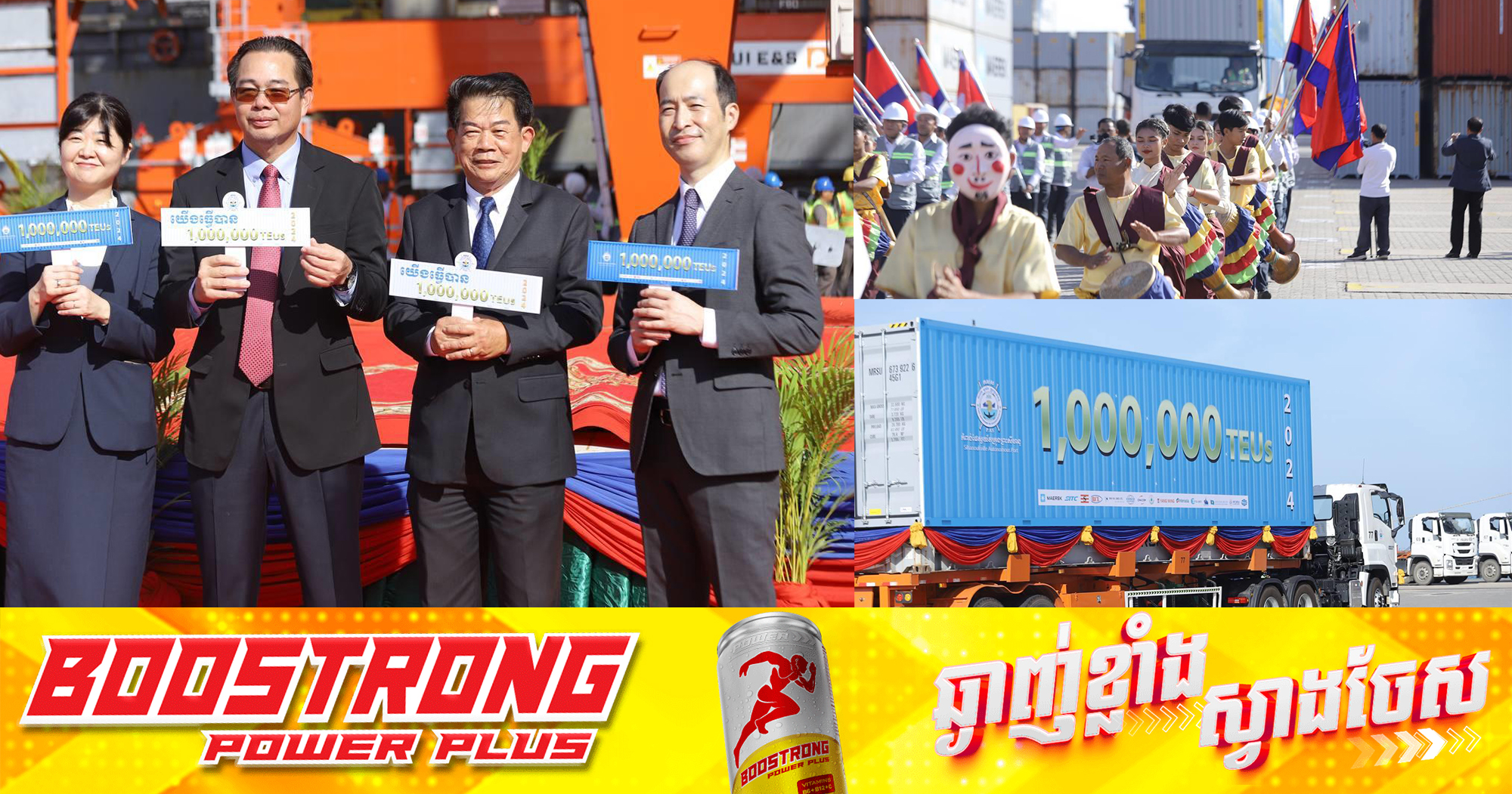 (ព្រះសីហនុ)៖ លោក ម៉ាង ស៊ីណេត អភិបាលខេត្តព្រះសីហនុ និងលោក លូ គឹមឈន់ ប្រតិភូរាជរដ្ឋាភិបាលកម្ពុជា ទទួលបន្ទុកជាប្រធានអគ្គនាយកកំពង់ផែស្វយ័តក្រុងព្រះសីហនុ បានអញ្ជើញជាអធិបតីក្នុងពិធីអបអរសាទរការសម្រេចបានបរិមាណកុងតឺន័រឆ្លងកាត់កំពង់ផែស្វយ័តចំនួន១លានTEUs។ ពិធីនេះធ្វើឡើងនាព្រឹកថ្ងៃទី២១ ខែធ្នូ ឆ្នាំ២០២៤ ដោយមានការចូលរួមពីលោក ប៊ី យ៉ូស៊ីហ៊ីរ៉ូ (ABE Yoshihiro) លេខាទី១ នៃស្ថានទូតជប៉ុនប្រចាំកម្ពុជា លោកស្រី មីយូរ៉ា យ៉ូស៊ីកុ (Ms.MIURA Yoshiko) អ្នកតំណាងជាន់ខ្ពស់នៃទីភ្នាក់ងារសហប្រតិបត្តិការអន្តរជាតិជប៉ុនប្រចាំនៅកម្ពុជា អភិបាលរងខេត្ត អភិបាលក្រុង ប្រធានមន្ទីរ អង្គភាពពាក់ព័ន្ធជុំវិញខេត្ត។ លោក ម៉ាង ស៊ីណេត បានកោតសរសើរ