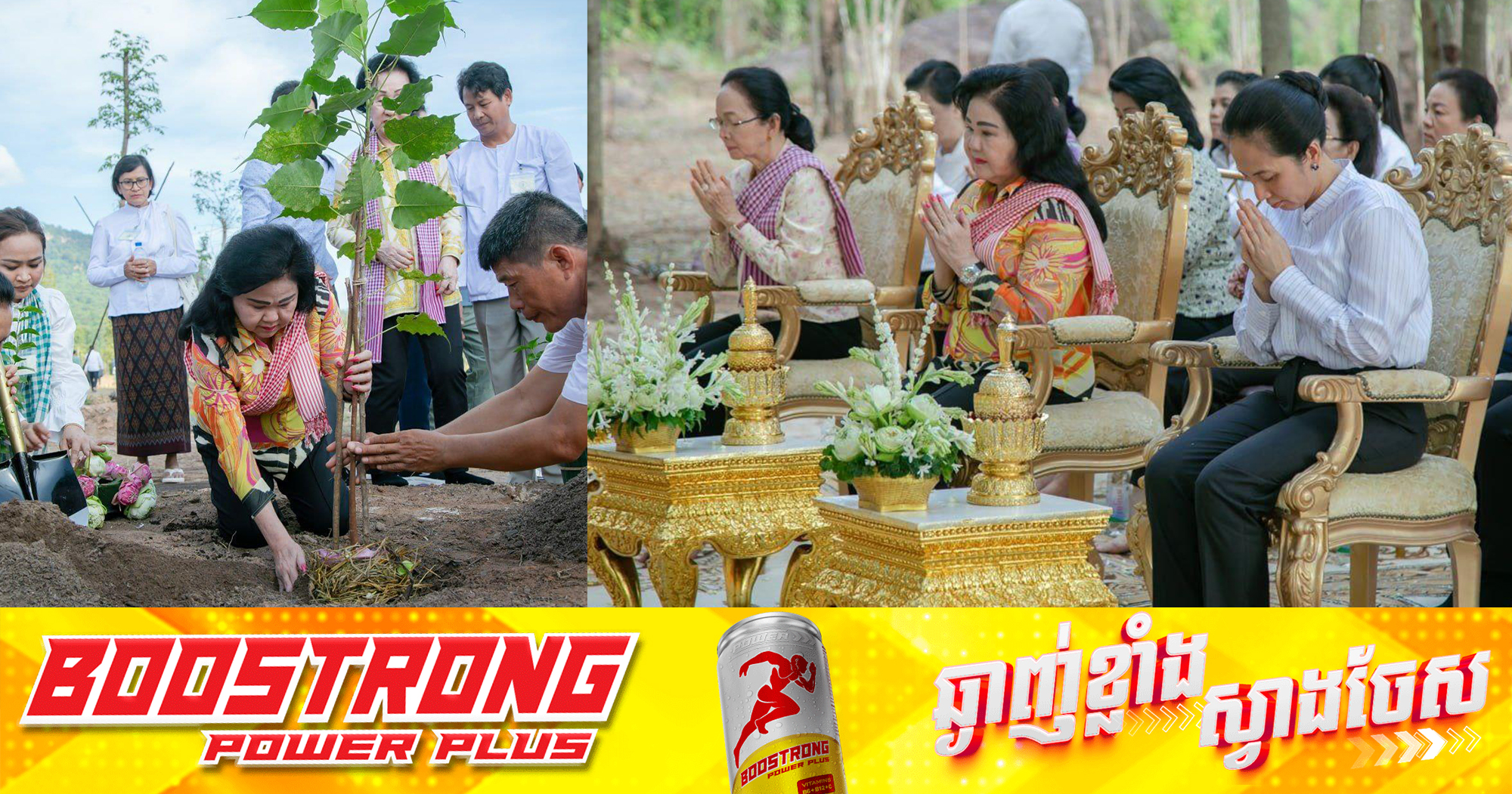 (សៀមរាប)៖ កាលពីរសៀលថ្ងៃទី៩ ខែវិច្ឆិកា ឆ្នាំ២០២៤ សម្តេចកិត្តិព្រឹទ្ធ ប៊ុន រ៉ានី ហ៊ុនសែន ប្រធានកាកបាទក្រហមកម្ពុជា និងលោកជំទាវបណ្ឌិត ពេជ ចន្ទមុន្នី ហ៊ុនម៉ាណែត រួមទាំងប្រតិភូអមដំណើរជាច្រើនរូបទៀត បានអញ្ជើញដាំដើមពោធិព្រឹក្សចំនួន៣ដើម នៅមណ្ឌលវិបស្សនា ធម្មអង្គុល ស្ថិតក្នុង ភូមិថ្មជល់ ឃុំត្បែង ស្រុកបន្ទាយស្រី ខេត្តសៀមរាប។ មានប្រសាសន៍ក្នុងឱកាសនោះ សម្តេចកិត្តិព្រឹទ្ធបណ្ឌិត ប៊ុន រ៉ានី ហ៊ុនសែន បានឱ្យដឹងថា ដើមពោធិព្រឹក្សនេះ បានអារាធនាពីប្រទេសស្រីលង្កា ដែលជាដើមពោធិព្រឹក្សផ្សាំមែកពីដើមកំណើតដែលមានប្រវត្តិជាក់លាក់។ ម្យ៉ាងដោយសារមណ្ឌលនេះ ជាមណ្ឌលវិបស្សនាមួយដែលមានទីធ្លាធំទូលាយ ស្ងប់ស្ងាត់ ត្រូវការមានដើមឈើជាម្លប់