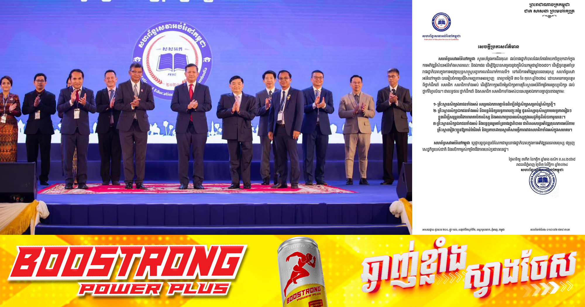 (ភ្នំពេញ)៖ គ្រឹះស្ថានអប់រំឯកជនទាំងអស់ ជាសមាជិកសហព័ន្ធសេវាអប់រំនៅកម្ពុជា សម្រចមិនដំឡើងតម្លៃសិក្សាសម្រាប់ឆ្នាំសិក្សាថ្មី។ នេះបើតាមសេចក្តីប្រកាសព័ត៌មាន ដែលបណ្តាញព័ត៌មាន ទទួលបាន នៅថ្ងៃទី៣ ខែកញ្ញា ឆ្នាំ២០២៤។ សូមជម្រាបថា ដើម្បីរួមចំណែកសម្រួលការលំបាករបស់ប្រជាពលរដ្ឋ សម្តេចមហាបវរធិបតី ហ៊ុន ម៉ាណែត នាយករដ្ឋមន្ត្រីកម្ពុជា បានស្នើសុំគ្រឹះស្ថានសិក្សានៅកម្ពុជា កុំដំឡើងថ្លៃសិក្សានៅក្នុងឆ្នាំ សិក្សា ២០២៤-២០២៥នេះ៕ ព័ត៌មានលម្អិត សូមអានសេចក្តីប្រកាសព័ត៌មានខាងក្រោម៖ ផ្ដល់សិទ្ធិដោយ៖ Freshnews