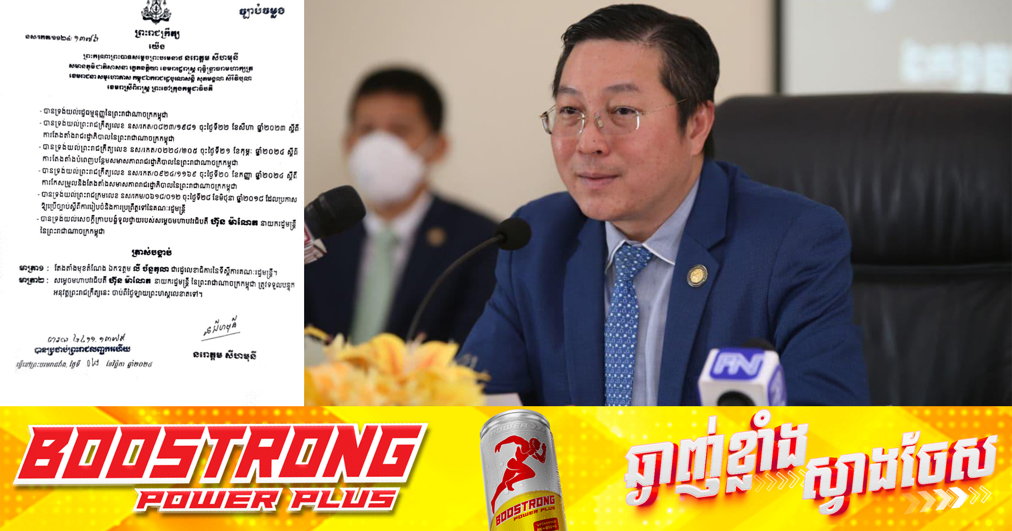 (ភ្នំពេញ)៖ ព្រះករុណា ព្រះបាទសម្ដេច ព្រះមរបនាថ នរោត្តម សីហមុនី ព្រះមហាក្សត្រនៃកម្ពុជា បានចេញព្រះរាជក្រឹត្យតែងតាំង លោក លី ច័ន្ទតុលា ជារដ្ឋលេខាធិការនៃទីស្ដីការគណៈរដ្ឋមន្ដ្រី។ នេះបើតាមព្រះរាជក្រឹត្យដែលបណ្ដាញព័ត៌មាន Fresh News ទទួលបាននៅព្រឹកថ្ងៃទី០៣ ខែវិច្ឆិកា ឆ្នាំ២០២៤។ ខាងក្រោមនេះ ជាព្រះរាជក្រឹត្យរបស់ព្រះមហាក្សត្រ៖ ផ្ដល់សិទ្ធិដោយ៖ Freshnews