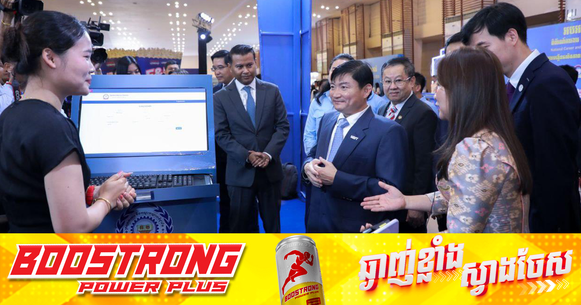 (ភ្នំពេញ)៖ នៅក្នុងឱកាសអញ្ជើញជាអធិបតី ក្នុងពិធីបើកដំណើរការ ពិព័រណ៍ការងារ និងផលិតភាពជាតិឆ្នាំ២០២៤ នាព្រឹកថ្ងៃសៅរ៍ ទី២៦ ខែតុលា ឆ្នាំ២០២៤ លោក ហេង សួរ រដ្ឋមន្ត្រីក្រសួងការងារ និងបណ្តុះបណ្តាលវិជ្ជាជីវៈ បានប្រកាសដាក់ឱ្យដំណើរការប្រើប្រាស់សាកល្បង បញ្ជរផ្តល់សេវាសាធារណៈតាមប្រព័ន្ធអេឡេិចត្រូនិក ដែលផ្តល់ភាពងាយស្រួលក្នុងការផ្តល់សេវាសាធារណៈនានារបស់ក្រសួង ដែលបង្កើតឡើងដោយស្នាដៃសិស្ស-និស្សិតរបស់ TVET សម្រាប់សាធារណជនប្រើប្រាស់ នៅអគារពិព័រណ៍កោះពេជ្រ រយៈពេល២ថ្ងៃ ចាប់ពីថ្ងៃទី២៦-២៧ ខែតុលា ឆ្នាំ២០២៤។ លោករដ្ឋមន្ត្រី បានបញ្ជាក់ថា បញ្ជរផ្តល់សេវាសាធារណៈតាមប្រព័ន្ធអេឡេិចត្រូនិកនេះមានមុខងារលើ សេវាសាធារណៈតាមបែបឌីជីថលចំនួន៦ ដូចជា៖ ១. សេវាចុះឈ្មោះស្វែងរកការងារ២. សេវាចុះឈ្មោះស្វែងរកបុគ្គលិក៣. សេវាចុះឈ្មោះស្វែងរកការងារក្រៅប្រទេស៤. សេវាចុះឈ្មោះសិក្សាជំនាញវិជ្ជាជីវៈ៥.