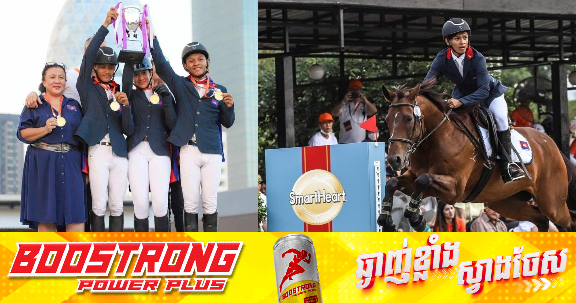 (ភ្នំពេញ)៖ ក្រុមកីឡាជិះសេះជម្រើសជាតិកម្ពុជា បានដណ្ដើមមេដាយមាស ក្នុងព្រឹត្តិការណ៍ FEI SEA Youth Cup លើកទី១ ឆ្នាំ២០២៤ នៅប្រទេសថៃ នាចុងសប្ដាហ៍នេះ ។ ព្រឹត្តិការណ៍អន្ដរជាតិ ដែលថៃធ្វើម្ចាស់ផ្ទះខាងលើនេះ គឺមានអត្តពលិកជាភ្ញៀវ ៦ប្រទេសចូលរួម គឺមានកម្ពុជា ហ្វីលីពីន សិង្ហបុរី ម៉ាឡេស៊ី ឥណ្ឌូណេស៊ី និងមីយ៉ាន់ម៉ា ។ ក្រោយដណ្ដើមបានមេដាយមាសលើវិញ្ញាសាជាក្រុមហើយនោះ ក្រុមកីឡាករ-កីឡាការិនីកម្ពុជា ក៏នឹងបន្ដការប្រកួតលើវិញ្ញាសាឯកត្តជន នៅថ្ងៃទី២៧ ខែតុលានេះផងដែរ ៕ ផ្ដល់សិទ្ធិដោយ៖ Freshnews