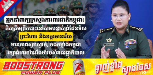 អ្នកនាំពាក្យក្រសួងការពារជាតិកម្ពុជា៖ គិតត្រឹមព្រឹកនេះនៅតាមបន្ទាត់ព្រំដែនទិសព្រះវិហារ និងឧត្តរមានជ័យមានភាពស្ងប់ស្ងាត់, កងកម្លាំងកម្ពុជារក្សាជំហរយ៉ាងរឹងមាំរបស់រាជរដ្ឋាភិបាល អនុវត្តបទឈប់បាញ់