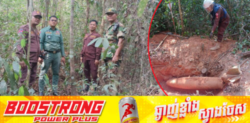 គ្រាប់មិនទាន់ផ្ទុះប្រភេទ MK-82 មួយគ្រាប់ ដែលទម្លាក់ពីយន្តហោះកាលពីសម័យសង្គ្រាម ត្រូវប្រទះឃើញនៅតំបន់ព្រៃសហគមន៍ជាំម្រេច ស្រុកប្រាសាទបល្ល័ង្ក
