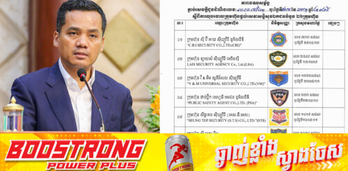 ក្រសួងមហាផ្ទៃ សម្រេចលុបឈ្មោះក្រុមហ៊ុនផ្តល់សេវាសន្តិសុខឯកជនចំនួន២៦ក្រុមហ៊ុន ដែលប្រកាសក្ស័យធន និងពុំមានសកម្មភាពបម្រើសេវាកម្ម