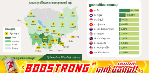 ចិននាំមុខគេដែលបានមកបោះទុនវិនិយោគនៅកម្ពុជា ក្នុងទំហំទឹកប្រាក់ ៣ ៨០៣លានដុល្លារ នៅរយៈពេល៨ខែ ឆ្នាំ២០២៥