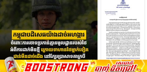 កម្ពុជាបដិសេធយ៉ាងដាច់អហង្ការ ចំពោះការចោទប្រកាន់គ្មានមូលដ្ឋានរបស់ថៃ អំពីការដាក់មីនថ្មី ក្រោយទាហានថៃម្នាក់ទៀតជាន់មីនដាច់ជើង នៅក្បែរប្រាសាទតាក្របី