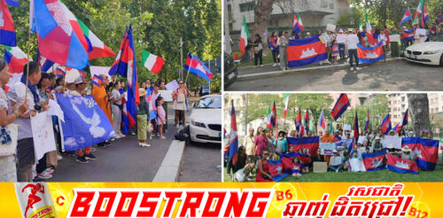 ពលរដ្ឋខ្មែរនៅប្រទេសអ៉ីតាលី នាំគ្នាជួបជុំគ្នានៅមុខស្ថានកុងស៊ុលថៃ ដើម្បីឲ្យថៃដោះលែងកងទ័ពកម្ពុជា១៨រូបដោយគ្មានលក្ខខណ្ឌ  និងបញ្ឈប់ជាបន្ទាន់ការឈា្លនពានទឹកដីកម្ពុជា