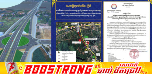 ក្រសួងសាធារណការ ប្រកាសការបិទចរាចរណ៍យានយន្តគ្រប់ប្រភេទ ជាបណ្តោះអាសន្នលើមហាវិថី ស៊ី ជីនពីង (ផ្លូវក្រវាត់ក្រុងទី៣) ចាប់ពីគ.ម ២+៨០០ ដល់ផ្លូវជាតិលេខ១