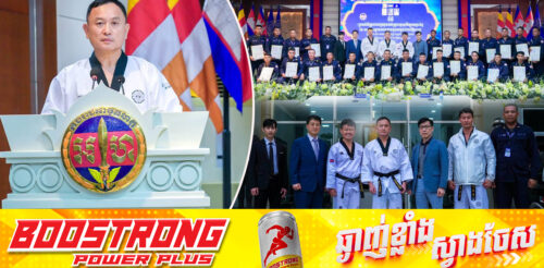 (ភ្នំពេញ)៖ នារសៀលថ្ងៃទី០៤ ខែមិថុនា ឆ្នាំ២០២៥ នៅបញ្ជាការដ្ឋានកងរាជអាវុធហត្ថរាជធានីភ្នំពេញ បានប្រារព្ធពិធីប្រគល់វិញ្ញាបនបត្រ ជូនដល់គ្រូបង្គោលកីឡាតេក្វាន់ដូ នៃកងរាជអាវុធហត្ថរាជធានីភ្នំពេញ ចំនួន២៨នាក់។ ពិធីនេះធ្វើឡើងក្រោមអធិបតីភាពលោកឧត្តមសេនីយ៍ឯក រ័ត្ន ស្រ៊ាង មេបញ្ជាការរង កងរាជអាវុធហត្ថលើផ្ទៃប្រទេស មេបញ្ជាការ កងរាជអាវុធហត្ថរាជធានីភ្នំពេញ និងលោក ផាក ហ៊ីដេ (Mr.PARK HEE DAE) តំណាងស្ថានទូតសាធារណរដ្ឋកូរ៉េខាងត្បូង ប្រចាំកម្ពុជា ដោយមានការចូលរួមពី លោកគ្រូជម្រើសជាតិកីឡាតេក្វាន់ដូប្រចាំកម្ពុជា គ្រូក្បាច់គុនការពារខ្លួនគូកគីវ៉ុន សាធារណរដ្ឋកូរ៉េខាងត្បូង ព្រមទាំង លោកមេបញ្ជាការរង នាយសេនាធិការរង ប្រធាន-អនុប្រធានមន្ទីរ នាយ-នាយរងការិយាល័យ មេបញ្ជាការ មេបញ្ជាការរង មូលដ្ឋានអាវុធហត្ថខណ្ឌទាំង១៤ និងមេបញ្ជាការវរសេនាតូចចល័ត នៃកងរាជអាវុធហត្ថរាជធានីភ្នំពេញ ជាច្រើនរូបទៀត។ ក្នុងឱកាសនោះលោក ផាក ហ៊ីដេ (Mr.PARK HEE DAE) បានថ្លែងកោតសរសើរ និងវាយតម្លៃខ្ពស់ចំពោះក្រុមគ្រូបង្គោលអាវុធហត្ថរាជធានីភ្នំពេញ ដែលបានយកចិត្តទុកដាក់ ខិតខំប្រឹងប្រែងហ្វឹកហាត់ក្បាច់គុនតេក្វាន់ដូ ប្រកបដោយស្មារតីទទួលខុសត្រូវខ្ពស់ រហូតទទួលបានសមិទ្ធផលដូចថ្ងៃនេះ ដែលក្នុងចំណោមគ្រូបង្គោលទាំ២៨នាក់ គឺទទួលបានវិញ្ញាបនបត្រទទួលស្គាល់កម្រិតខ្សែក្រវាត់ខ្មៅថ្នាក់ ២ដាន់ ចំនួន ១២នាក់ […]
