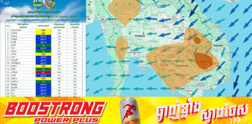 (ភ្នំពេញ)៖ ក្រសួងបរិស្ថាន បានជូនដំណឹងអំពីស្ថានភាពគុណភាពខ្យល់ នៅក្នុងព្រះរាជាណាចក្រកម្ពុជា សម្រាប់ថ្ងៃទី៣​ ខែកុម្ភៈ ឆ្នាំ២០២៥ ចាប់ពីម៉ោង ៦ល្ងាច ដល់ម៉ោង ៦ព្រឹក ថ្ងៃទី៤ ខែកុម្ភៈ ឆ្នាំ២០២៥​ ដែលមានកំហាប់ភាគល្អិតនិចលគិតជាមធ្យមស្មើនឹង ៤១.០៧ µg/m3 ធៀបនឹងស្តង់ដា ៥០ ug/m3 និងគិតជាសន្ទស្សន៍គុណភាពខ្យល់ (Air Quality Index) គឺ «ល្អ»។ ពណ៌ខៀវៈ គុណភាពខ្យល់ល្អណាស់ មានខេត្តកំពង់ចាម ខេត្តកំពង់ឆ្នាំង ខេត្តកំពង់ស្ពឺ ខេត្តកំពត ខេត្តក្រចេះ រាជធានីភ្នំពេញ ខេត្តមណ្ឌលគីរី ខេត្តរតនគិរី ខេត្តស្ទឹងត្រែង ខេត្តតាកែវ ខេត្តកែប ខេត្តស្វាយរៀង​ ខេត្តឧត្តរមានជ័យ និងខេត្តត្បូងឃ្មុំ, ពណ៌បៃតងៈ គុណភាពខ្យល់ល្អមានខេត្តកណ្តាល ខេត្តកំពង់ធំ​ ខេត្តព្រៃវែង​ ខេត្តប៉ៃលិន និងខេត្តព្រះសីហនុ​​, ពណ៌លឿងៈ​ ខេត្តបន្ទាយមានជ័យ ខេត្តព្រះវិហារ ខេត្តបាត់ដំបង ខេត្តសៀមរាប និងខេត្តកោះកុង​​, ពណ៌ក្រហមៈ ខេត្តពោធិ៍សាត់៕ […]