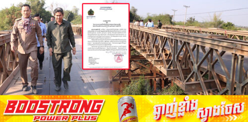 អាជ្ញាធរខេត្តកំពង់ធំ បិទចរាចរយានយន្តដឹកទំនិញគ្រប់ប្រភេទឆ្លងកាត់ស្ពានអូរមៀន ស្ថិតនៅចំនុចភូមិសមរម្យ ឃុំមានជ័យ ស្រុកសណ្តាន់