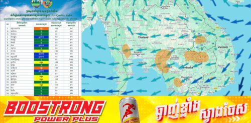 (ភ្នំពេញ)៖ ក្រសួងបរិស្ថាន សូមជូនដំណឹងអំពីស្ថានភាពគុណភាពខ្យល់នៅក្នុងព្រះរាជាណាចក្រកម្ពុជា សម្រាប់ថ្ងៃទី៣០ ខែមករា ឆ្នាំ២០២៥ ចាប់ពីម៉ោង ៦ ល្ងាច ដល់ម៉ោង ៦ព្រឹក ថ្ងៃទី៣១ ខែមករា ឆ្នាំ២០២៥ ដែលមានកំហាប់ភាគល្អិតនិចលគិតជាមធ្យមស្មើនឹង ៥០.២៤ µg/m3 ធៀបនឹងស្តង់ដា ៥០ ug/m3 និងគិតជាសន្ទស្សន៍គុណភាពខ្យល់ (Air Quality Index) គឺ «ល្អ»។ ពណ៌ខៀវៈ គុណភាពខ្យល់ល្អណាស់ មានខេត្តកំពង់ឆ្នាំង ខេត្តកំពត ខេត្តក្រចេះ ខេត្តមណ្ឌលគីរី ខេត្តរតនគិរី និងខេត្តត្បូងឃ្មុំ, ពណ៌បៃតងៈ គុណភាពខ្យល់ល្អមានខេត្តបាត់ដំបង ខេត្តកំពង់ចាម ខេត្តកំពង់ស្ពឺ ខេត្តកំពង់ធំ ខេត្តកណ្តាល រាជធានីភ្នំពេញ ខេត្តព្រៃវែង ខេត្តសៀមរាប ខេត្តស្វាយរៀង ខេត្តកែប ខេត្តឧត្តរមានជ័យ និងខេត្តប៉ៃលិន, ពណ៌លឿងៈ ខេត្តកោះកុង ខេត្តព្រះវិហារ ខេត្តតាកែវ ខេត្តស្ទឹងត្រែង និងខេត្តព្រះសីហនុ, ពណ៌ទឹកក្រូចៈ ខេត្តបន្ទាយមានជ័យ និងខេត្តពោធិ៍សាត់៕ […]