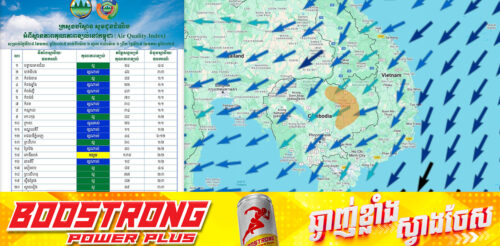 (ភ្នំពេញ)៖ ក្រសួងបរិស្ថាន ជូនដំណឹងអំពីស្ថានភាពគុណភាពខ្យល់នៅក្នុងព្រះរាជាណាចក្រកម្ពុជា សម្រាប់ថ្ងៃទី២៨ ខែមករា ឆ្នាំ២០២៥ ចាប់ពីម៉ោង ៦ល្ងាច ដល់ម៉ោង ៦ព្រឹក ថ្ងៃទី២៩ ខែមករា ឆ្នាំ២០២៥ ដែលមានកំហាប់ភាគល្អិតនិចលគិតជាមធ្យមស្មើនឹង ៣០.១២ µg/m3 ធៀបនឹងស្តង់ដា ៥០ ug/m3 និងគិតជាសន្ទស្សន៍គុណភាពខ្យល់ (Air Quality Index) គឺ «ល្អ»។ ពណ៌ខៀវៈ គុណភាពខ្យល់ល្អណាស់ មានខេត្តបាត់ដំបង ខេត្តកំពង់ឆ្នាំង ខេត្តកំពង់ស្ពឺ ខេត្តកំពត ខេត្តកណ្តាល ខេត្តក្រចេះ ខេត្តមណ្ឌលគីរី រាជធានីភ្នំពេញ ខេត្តរតនគិរី ខេត្តឧត្តរមានជ័យ ខេត្តព្រៃវែង និងខេត្តត្បូងឃ្មុំ, ពណ៌បៃតងៈ គុណភាពខ្យល់ល្អ មានខេត្តបន្ទាយមានជ័យ ខេត្តកំពង់ចាម ខេត្តកំពង់ធំ ខេត្តកោះកុង ខេត្តព្រះវិហារ ខេត្តសៀមរាប ខេត្តព្រះសីហនុ ខេត្តស្វាយរៀង ខេត្តតាកែវ ខេត្តស្ទឹងត្រែង ខេត្តកែប និងខេត្តប៉ៃលិន, ពណ៌លឿងៈ ខេត្តពោធិ៍សាត់៕ ផ្ដល់សិទ្ធិដោយ៖ […]