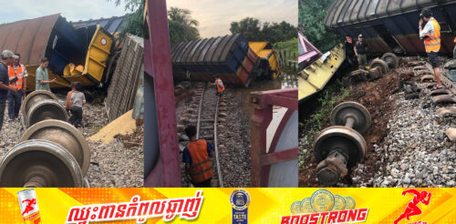 រថភ្លើងដាច់ចេញពីទូក្រឡាប់ធ្លាក់ផ្លូវដោយខ្លួនឯង នៅស្រុកក្រគរ ខេត្តពោធិ៍សាត់