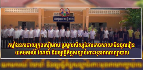 កម្លាំងនគរបាលក្រុងសៀមរាប ប្រមូលសិស្សដែលគេចសាលា​មិនចូលរៀន​ ​យកមកអប់រំ​ ណែនាំ​ និងឲ្យធ្វើកិច្ចសន្យាចំពោះមុខអាណាព្យាបាល