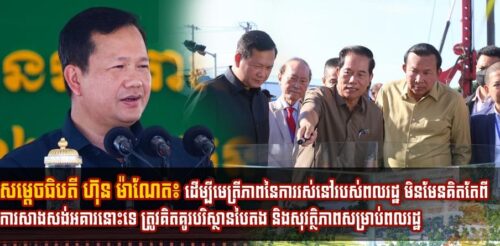 សម្តេចធិបតី ហ៊ុន ម៉ាណែត៖ ដើម្បីមេត្រីភាពនៃការរស់នៅរបស់ពលរដ្ឋ មិនមែនគិតតែពីការសាងសង់អគារនោះទេ ត្រូវគិតគូរបរិស្ថានបៃតង និងសុវត្ថិភាពសម្រាប់ពលរដ្ឋ