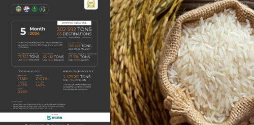(ភ្នំពេញ)៖ ការនាំចេញក្នុង៥ខែ នៃឆ្នាំ២០២៤ កម្ពុជាបាននាំចេញអង្ករចំនួន ៣០២ ៥៩២ តោន គិតជាទឹកប្រាក់បានចំនួន ២១៩.៩១លានដុល្លារសហរដ្ឋអាមេរិក។ នេះបើតាមសេចក្ដីប្រកាសព័ត៌មាន របស់សហព័ន្ធស្រូវអង្ករកម្ពុជា ដែលបណ្ដាញព័ត៌មាន Fresh News ទទួលបាននៅថ្ងៃទី០៥ ខែមិថុនា ឆ្នាំ២០២៤។ សេចក្ដីប្រកាសព័ត៌មាន បានបញ្ជាក់ថា ក្នុងរយៈពេល៥ខែ នៃឆ្នាំ២០២៤ កម្ពុជាបាននាំចេញអង្ករបានចំនួន ៣០២,៥៩២តោន តាមរយៈក្រុមហ៊ុននាំចេញអង្ករចំនួន ៤៩ក្រុមហ៊ុន ទៅកាន់គោលដៅចំនួន ៦៣ ដែលក្នុងនោះ រួមមាន៖ * ទៅកាន់បណ្តាប្រទេសនៅក្នុងតំបន់អឺរ៉ុបចំនួន ២៦ បានបរិមាណអង្ករចំនួន ១៣៦,៥២៨តោន គិតជាទឹកប្រាក់ចំនួន ១០៤.៤០លានដុល្លារសហរដ្ឋអាមេរិក* ទៅកាន់ប្រទេសចិនរួមទាំងហុងកុង និងម៉ាកាវ ចំនួន ៧៣,៣២០តោន គិតជាទឹកប្រាក់ចំនួន ៤៦.២០លានដុល្លារសហរដ្ឋអាមេរិក* ទៅកាន់ប្រទេសក្នុងអាស៊ាន រួមទាំងទីម័រខាងកើត ចំនួន៧ប្រទេសបានបរិមាណ ចំនួន ៦៥,៤១២តោន គិតជាទឹកប្រាក់ចំនួន ៤៦.៣៤ លានដុល្លារសហរដ្ឋអាមេរិក* ទៅកាន់គោលដៅ២៧ផ្សេងទៀត រួមមាន៖ អាហ្វ្រិក មជ្ឈឹមបូព៌ា អាមេរិក កាណាដា […]