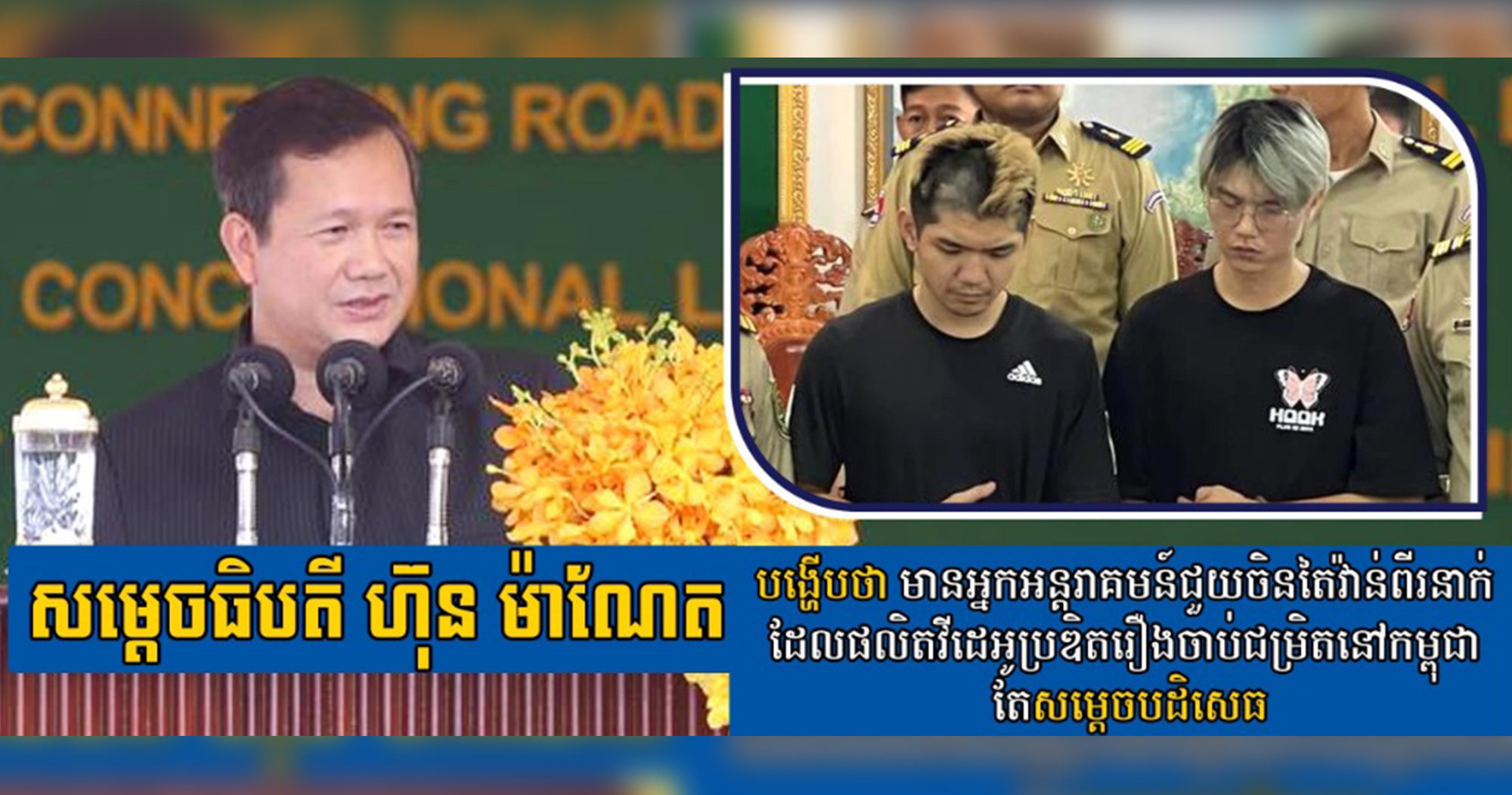សម្តេចធិបតី ហ៊ុន ម៉ាណែត បង្ហើបថា មានអ្នកអន្តរាគមន៍ជួយចិនតៃវ៉ាន់ពីរនាក់ ដែលផលិតវីដេអូប្រឌិតរឿងចាប់ជម្រិតនៅកម្ពុជា តែសម្តេចបដិសេធ