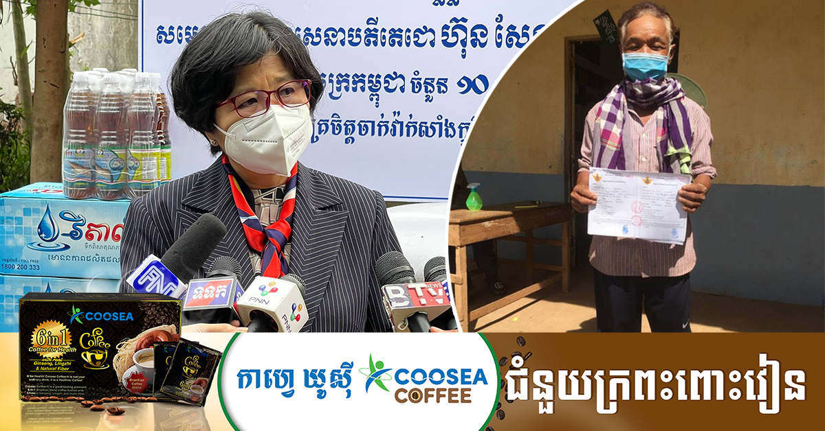 ព្រឹកថ្ងៃនេះលោកស្រី ឱ វណ្ណឌីន នាំយកថវិកាចំនួន១០លានរៀល និងសម្ភារៈផ្សេងទៀតរបស់សម្តេចតេជោ ប្រគល់ជូនអ្នកចាក់វ៉ាក់សាំងទី៤លាន ដែលជាយុទ្ធជនពិការនៅស្រុកបុទុមសាគរ ខេត្តកោះកុង