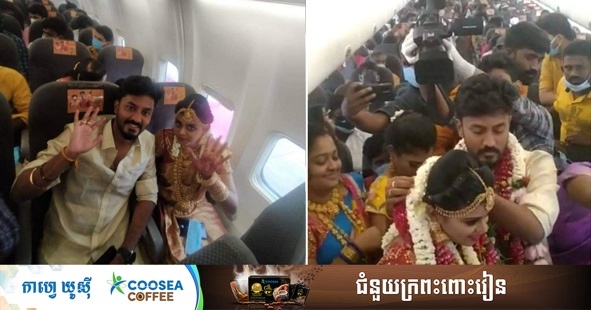 ឥណ្ឌា៖ នៅក្នុងអំឡុងពេលដែលជំងឺកូវីដ ១៩ កំពុងតែរាតត្បាត អាជ្ញាធរនៃប្រទេសជាច្រើនបានហាមមិនឲ្យប្រជាពលរដ្ឋរៀបចំពិធីមង្គលការធំដុំនៅតាមទីសាធារណៈឡើយ ដើម្បីបញ្ចៀសការចម្លងមេរោគនៅក្នុងចំណោមក្រុមមនុស្សដែលបានទៅចូលរួមកម្មវិធីនោះ។ ក្នុងកាលៈទេសៈបែបនេះ គូស្នេហ៍មួយចំនួនបានសម្រេចពន្យាពេលរៀបការឬរៀបចំពិធីមង្គលជាលក្ខណៈតូចតាចដោយគ្រាន់តែមានការចូលរួមពីសំណាក់ឪពុកម្តាយទាំងសងខាងនិងចាស់ទុំពីរបីនាក់តែប៉ុណ្ណោះ។ យ៉ាងណាក្តី គូស្នេហ៍ជនជាតិឥណ្ឌាមួយគូបានជ្រើសរើសវិធីប្លែកគេមួយដើម្បីរៀបការ គឺពួកគេបានជួលយន្តមួយគ្រឿងនិងអញ្ជើញភ្ញៀវចំនួន ១៦១នាក់ ហើយជិះទៅរៀបការនៅលើអាកាសយ៉ាងរីករាយ ដែលសកម្មភាពនេះមិនបានខុសពីសេចក្តីណែនាំរបស់អាជ្ញាធរឡើយ ព្រោះនាពេលកន្លងមកអាជ្ញាធរបានហាមត្រឹមមិនឲ្យរៀបចំពិធីមង្គលការនៅទីសាធារណៈ តែមិនដែលហាមរឿងរៀបការនៅលើអាកាសនោះទេ។ បើយោងតាមការចុះផ្សាយនៅក្នុងសារព័ត៌មាន News18 បានឲ្យដឹងថា ពិធីមង្គលការដ៏ពិសេសនេះបានរៀបចំឡើងកាលពីថ្ងៃអាទិត្យទី ២៣ ខែ ឧសភា ម្សិលមិញនេះ នៅក្នុងក្រុង  Madurai រដ្ឋ Tamil Nadu ភាគខាងត្បូងនៃប្រទេសឥណ្ឌា។ ចំពោះយន្តហោះដែលគេបានប្រើប្រាស់ជាកន្លែងរៀបចំពិធីមង្គលការវិញគឺជាយន្តហោះដឹកអ្នកដំណើរប្រភេទ SpiceJet Boeing 737។ យ៉ាងណាក្តី ពិធីរៀបការនៅលើយន្តហោះនេះមិនមានរយៈពេលយូរដូចពិធីមង្គលការធម្មតាឡើយ ដោយគេបានជួលយន្តហោះឲ្យបើកត្រឹមរយៈពេលតែ ២ ម៉ោងប៉ុណ្តោះ ព្រោះការជួលយន្តហោះជាលក្ខណៈឯកជនដូចនេះគឺមានតម្លៃខ្ពស់ខ្លាំងណាស់។ ផ្តល់សិទ្ធិដោយ៖ Khmernote