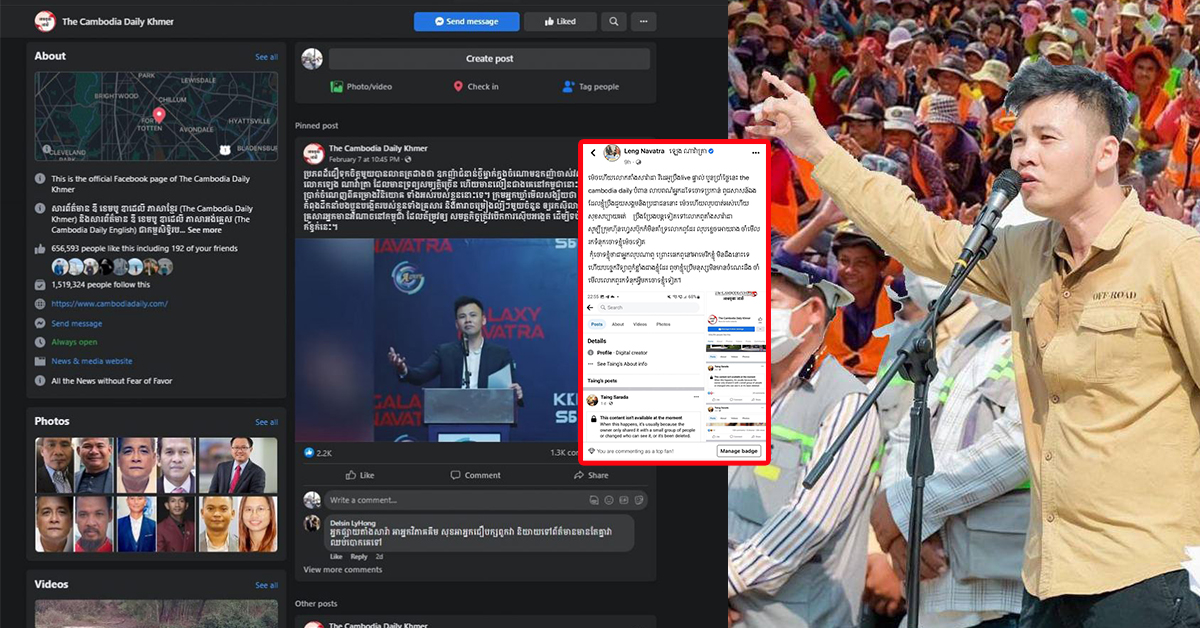 វីដេអូលើហ្វេសប៊ុក taing sarada និង The Cambodia daily ផ្សាយខុសការពិតពីអ្នកឧកញ៉ា ឡេង ណាវ៉ាត្រា ហ្វេសប៊ុកប្លុកចោលព្រោះបំពានសិទ្ធិបុគ្គល