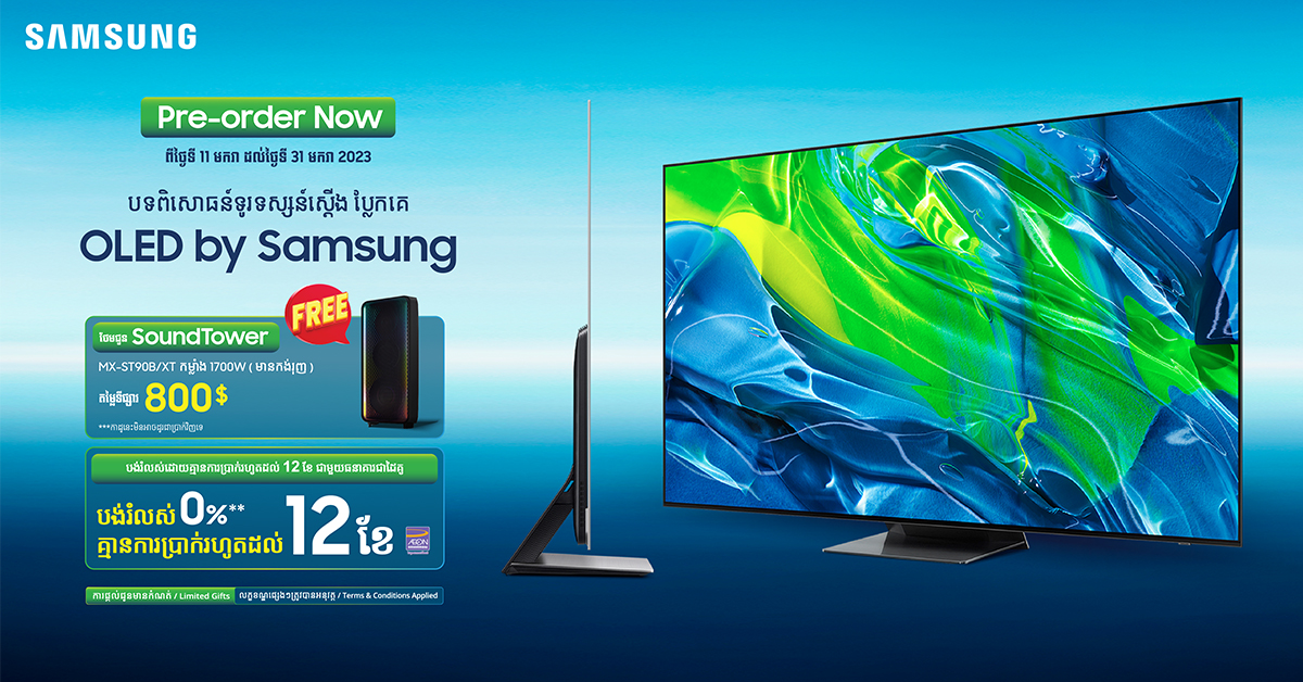 (ភ្នំពេញ) ថ្ងៃទី ១១ ខែមករា ឆ្នាំ២០២៣៖ សម្រាប់ទូរទស្សន៍ សាមសុង OLED លោកអ្នកប្រាកដជាទទួលបាននូវអ្វីដែលពិសេសជាទីបំផុតលើសពីការមើលឃើញ និងការកម្សាន្តរបស់លោកអ្នក! ទាំងរូបរាង, គុណភាព, កម្រិតពណ៌, និងសំឡេង គឺពិតជាអាចនាំអារម្មណ៍របស់អ្នកដែលកំពុងទស្សនាឱ្យស្លុង និងស្ថិតក្នុងពិភពមួយដែលល្អ និងស្រស់ស្អាតលើសពីធម្មជាតិ! ហើយឥឡូវនេះរាល់ការដាក់បញ្ជាទិញទុកមុននូវទូរទស្សន៍ សាមសុង OLED ជំនាន់ថ្មី ចាប់ពីថ្ងៃចេញផ្សាយនេះរហូតដល់ថ្ងៃទី 31 មករា ឆ្នាំ 2023 លោកអ្នកនឹងទទួលបានការផ្ដល់ជូននូវប្រូម៉ូសិនដ៏ពិសេសៗដូចជា៖ – ការបញ្ចុះតម្លៃលើទូរទស្សន៍ សាមសុង OLED 65” អ៊ីញ សល់ត្រឹមតែ $2,999 (តម្លែដើម $4,121) – ការបញ្ចុះតម្លៃលើទូរទស្សន៍ សាមសុង OLED 55” អ៊ីញ សល់ត្រឹមតែ $1,999 (តម្លែដើម $2,747) – បង់រំលស់ជាមួយធនាគា AEON ក្នុងអត្រាការប្រាក់ 0% រហូតដល់ 12 ខែ […]