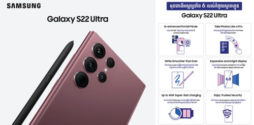 (ភ្នំពេញ) ថ្ងៃទី ០៦ ខែមេសា ឆ្នាំ ២០២២៖ មុននឹងស្រឡាញ់ត្រូវដឹងឱ្យច្បាស់…តែបើដឹងច្បាស់ហើយថាមានចំណុចដែលគួរឱ្យស្រឡាញ់បំផុតនោះប្រាកដជាផុងចិត្តដកបេះដូងមិនរួចឡើយ! ត្រូវអត់? តួយ៉ាងដូចជា Galaxy S22 ស៊េរី របស់ក្រុមហ៊ុន សាមសុង ពេលនេះតែម្តង…មិនមែនល្អឆើត ស្អាតតែខាងក្រៅ ហើយធ្វើឱ្យអ្នកខកចិត្តនៅក្រោយពេលដឹងលក្ខណៈខាងក្នុងនោះទេ! លោកអ្នក និងប្រិយមិត្តអ្នកស្នេហាស្មាតហ្វូនរបស់ក្រុមហ៊ុន សាមសុង ប្រាកដជាធ្លាប់បានដឹងហើយ…តែថ្ងៃនេះលោកអ្នកក៏នឹងដឹងរឹតតែច្បាស់បន្ថែមទៀតពីស្មាតហ្វូនដ៏ល្អឯកដែលកើតចេញពីការញាត់ឬបង្កាត់បញ្ចូលគ្នានៃកំពូលបច្ចេកវិទ្យារវាងអានុភាពរបស់ Note និងកំពូលអានុភាពរបស់ Flagship S ស៊េរី! ពេលឮពាក្យថា Note របស់ក្រុមហ៊ុន សាមសុង លោកអ្នកប្រាកដជានឹកឃើញដល់ប៊ិកវេទមន្ត(S-pen) មុនគេ ត្រូវអត់? ហើយបើនិយាយពីកំពូលកាមេរ៉ាដែលថតច្បាស់ល្អឥតខ្ចោះទាំងរូបភាព និងវីដេអូ គ្រប់ស្ថានភាពពន្លឺ លោកអ្នកក៏ប្រាកដជានឹកដល់ Galaxy S ស៊េរី Flagship មុនគេហើយមែនទេ? ថ្ងៃនេះយើងនឹងធ្វើការបង្ហាញជូននូវចំណុចក៏ដូចជាលក្ខណៈពិសេសសង្ខេបខ្លីតែខ្លឹមរបស់ស្មាតហ្វូនដ៏ល្អឯកប្រចាំឆ្នាំ 2022 Galaxy S22 Ultra ដែលជាស្មាតហ្វូនដ៏ល្អឥតខ្ចោះសម្រាប់ជីវិតប្រចាំថ្ងៃរបស់លោកអ្នកទាំង (ការងារ, ការកម្សាន្ត, ការថតវីដេអូ, ការថតរូប…) គឺសុទ្ធតែទទួលបានភាពអស្ចារ្យ និងឥតខ្ចោះគ្រប់ពេលតែម្តង! ចំពោះ […]
