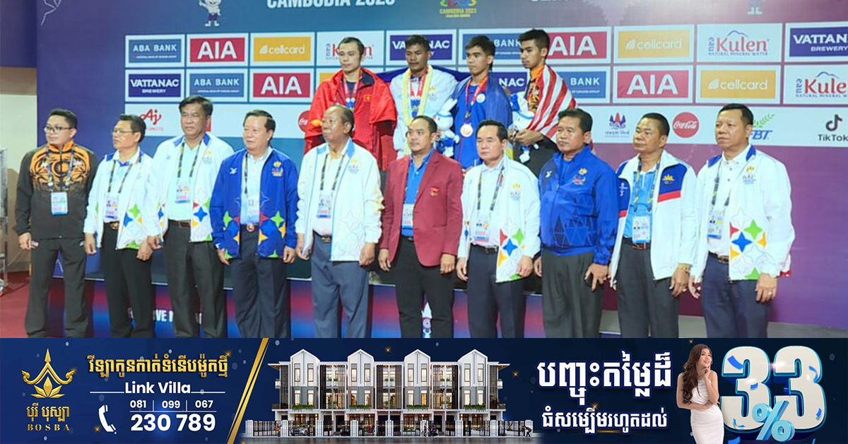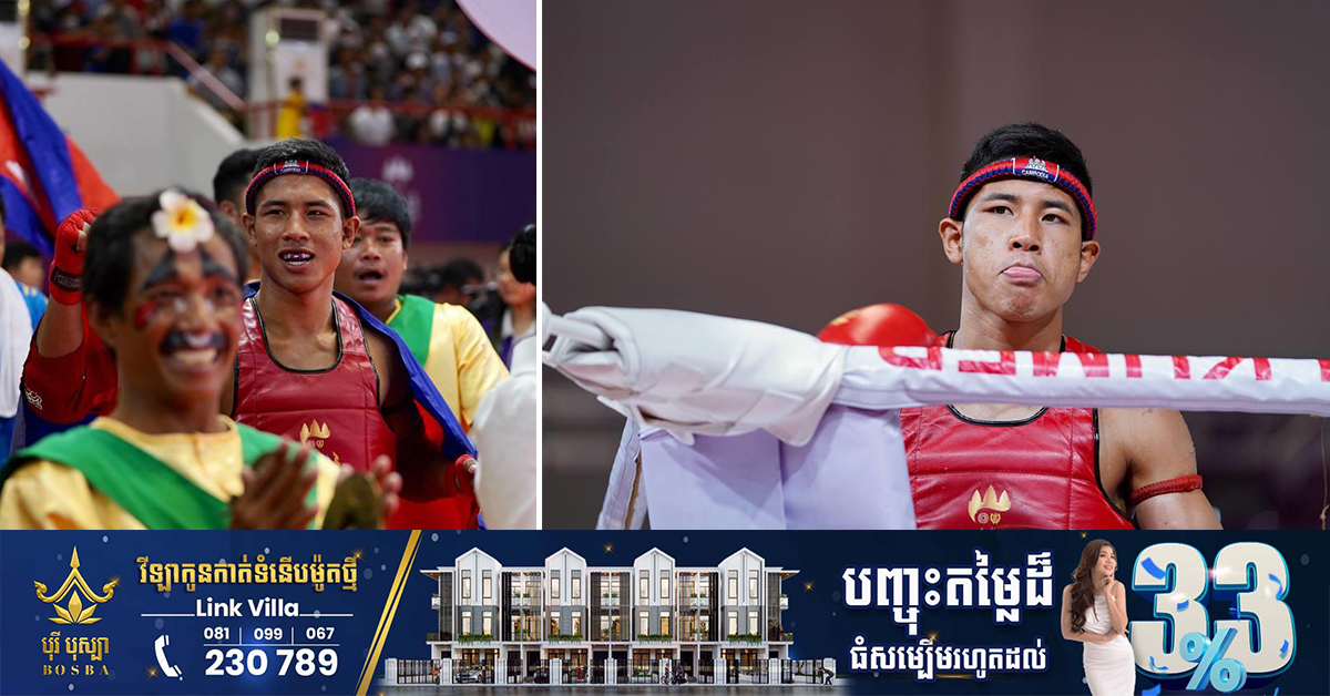 (ភ្នំពេញ)៖ អបអរសារទ កីឡាករគុនខ្មែរ ឈុត សេរីវ៉ាន់ថង ដែលបានឈ្នះមេដាយមាស នៃព្រឹត្តិការណ៍ស៊ីហ្គេម លើកទី៣២ ក្រោយយកឈ្នះកីឡាករឡាវ ATTAXAY SIHABOUT លើវិញ្ញាសាប្រយុទ្ធទម្ងន់ ៦០គីឡូក្រាម ក្នុងជំនួបវគ្គផ្ដាច់ព្រ័ត្រ នៅរសៀលថ្ងៃទី១១ ខែឧសភា ឆ្នាំ២០២៣ ធ្វើឡើងនៅសាលដំរី នៃពហុកីឡដ្ឋានជាតិមរតកតេជោ។ ការប្រកួតវិញ្ញាសារគុនខ្មែរនេះ ក៏ទទួលបានការអញ្ជើញបំពាក់មេដាយជ័យលាភីដោយផ្ទាល់របស់ សម្តេចពិជ័យសេនា ទៀ បាញ់ ឧបនាយករដ្ឋមន្រ្តី រដ្ឋមន្រ្តីក្រសួងការពារជាតិ និងជាប្រធានគណៈកម្មាធិការជាតិរៀបចំការប្រកួតកីឡាអាស៊ីអាគ្នេយ៍ លើកទី៣២ និងអាស៊ានប៉ារ៉ាហ្គេម លើកទី១២ ឆ្នាំ២០២៣ (CAMSOC-CAMAPGOC)។ សូមបញ្ជាក់ថា នៅថ្ងៃទី១១ ខែឧសភា ឆ្នាំ២០២៣ នេះ ជាការប្រកួតវិញ្ញាសារគុនខ្មែរ ដែលបានឈានដល់វគ្គផ្ដាច់ព្រ័ត្រ ដណ្ដើមមេដាយមាស កីឡាស៊ីហ្គេម ២០២៣ ដោយសរុបទាំងមានចំនួន ៩គូ។ អ្វីដែលជាមោទនភាពរបស់ប្រទេសកម្ពុជានោះ គឺក្នុងការប្រកួតវគ្គផ្ដាច់ព្រ័ត្រនេះ គឺមានកីឡាករ-កីឡាការិនីខ្មែរ ចូលរួមប្រកួតទាំង ៩គូតែម្ដង៕ ផ្តល់សិទ្ធិដោយ៖ freshnews