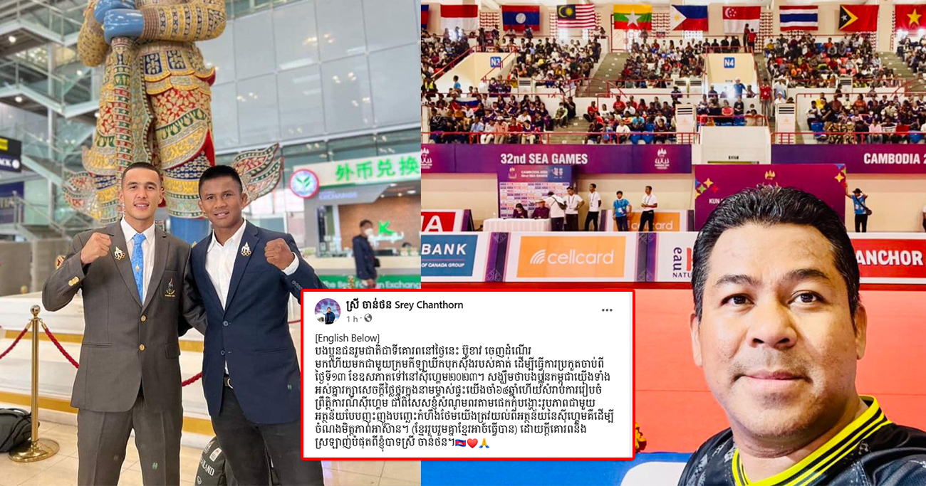 កីឡាករកម្ពុជា នន់ ស្រមោចក្រហម ឈ្នះមេដាយមាស ដោយគូប្រកួតឥណ្ឌូនេស៊ីបោះបង់ការប្រកួត កីឡាបញ្ចសីលា ក្នុងវិញ្ញសាប្រយុទ្ធបុរស ទម្ងន់ ៤៥គីឡូ