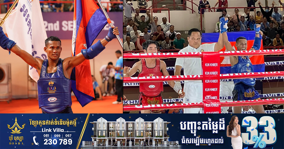 (ភ្នំពេញ)៖ អបអរសាទរ កីឡាករកម្ពុជា នន់ ស្រមោចក្រហម ទទួលបានមេដាយមាស ក្នុងព្រឹត្តិការណ៍កីឡាអាស៊ីអាគ្នេយ៍លើកទី៣២ ឆ្នាំ២០២៣ ក្នុងប្រភេទកីឡាបញ្ចសីលា លើវិញ្ញាសាប្រយុទ្ធបុរស ទម្ងន់៤៥គីឡូ ដោយឥណ្ឌូនេស៊ី បោះបង់ការប្រកួត ធ្វើឡើនៅមជ្ឈមណ្ឌលពិព័រណ៍អន្តរជាតិជ្រោយចង្វារ (OCIC) , ថ្ងៃទី១០ ខែឧសភា ឆ្នាំ២០២៣៕ ផ្តល់សិទ្ធិដោយ៖ freshnews